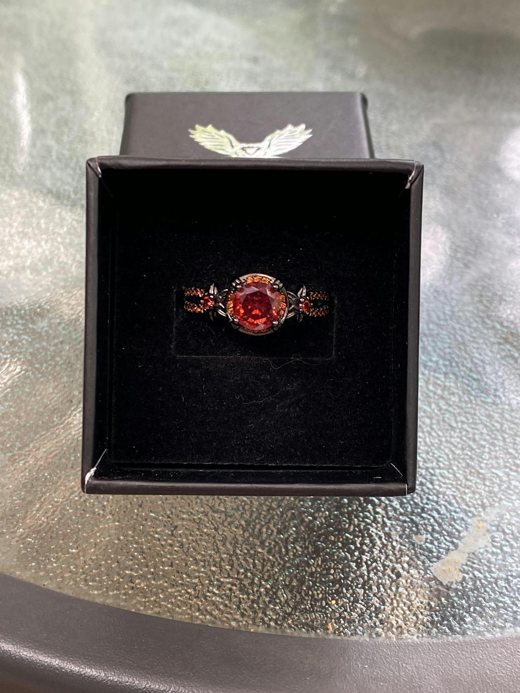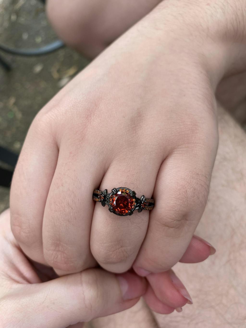 Black Diamond-Set Brass Engagement Ring