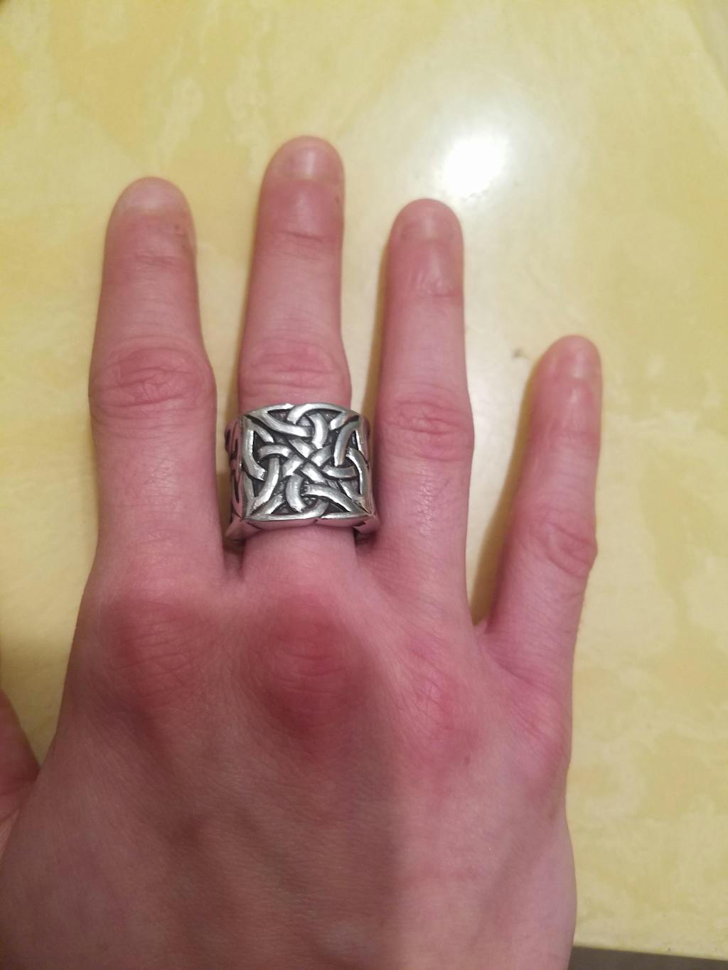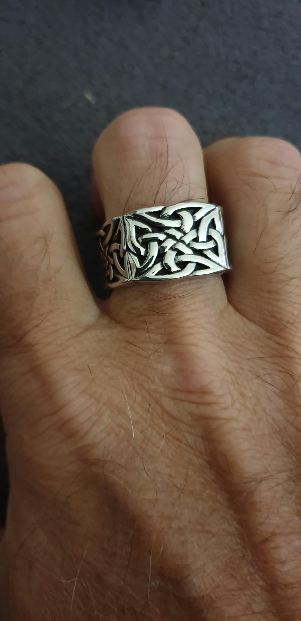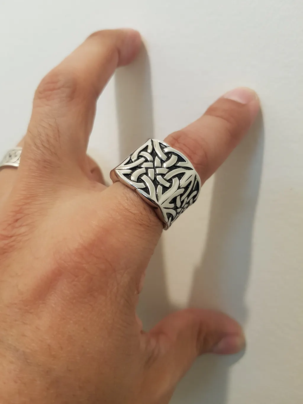 This knot stainless steel ring is heavily adorned with knots and stunning carvings that make for a truly unique and beautiful design. This knot ring has been meticulously polished to give it the high shine it requires. Act now before they sell out for good! Truly men's stainless steel ring, truly men's Viking ring.