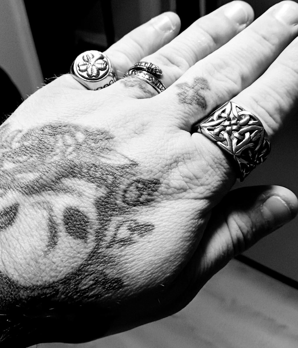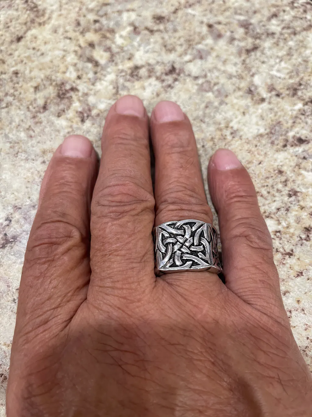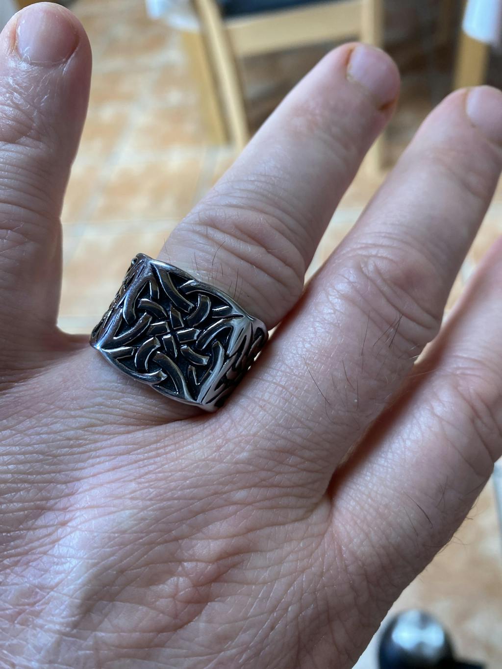 This knot stainless steel ring is heavily adorned with knots and stunning carvings that make for a truly unique and beautiful design. This knot ring has been meticulously polished to give it the high shine it requires. Act now before they sell out for good! Truly men's stainless steel ring, truly men's Viking ring.