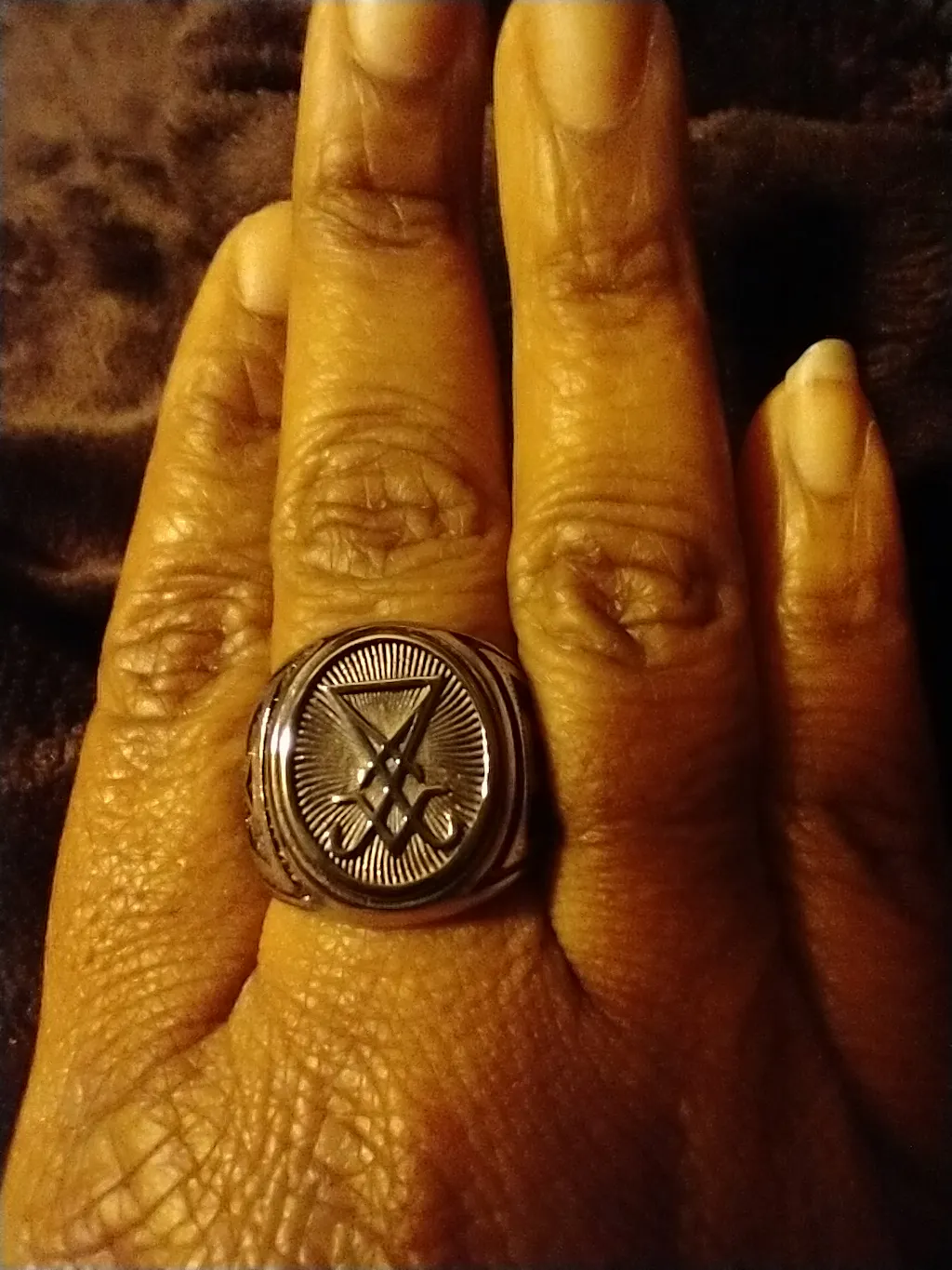 The Sigil of Lucifer originated in Grimoire of Truth published in Italy in the 16th century. It is the third sign of Lucifer in the Grimoire and is based on a nine by nine magic square. Magic squares were used before the 16th century to create magic and symbolize many different things. The Sigil of Lucifer contains an “X” which symbolizes power in this physical plane. The inverted triangle is a symbol for water and the “V” at the bottom symbolizes duality. The whole symbol looks like a chalice that represents creation.  Certain to stand out, this unique ring is also designed to stand the test of time. Thick and durable, providing first-class jewelry that won’t lose its luster over time.