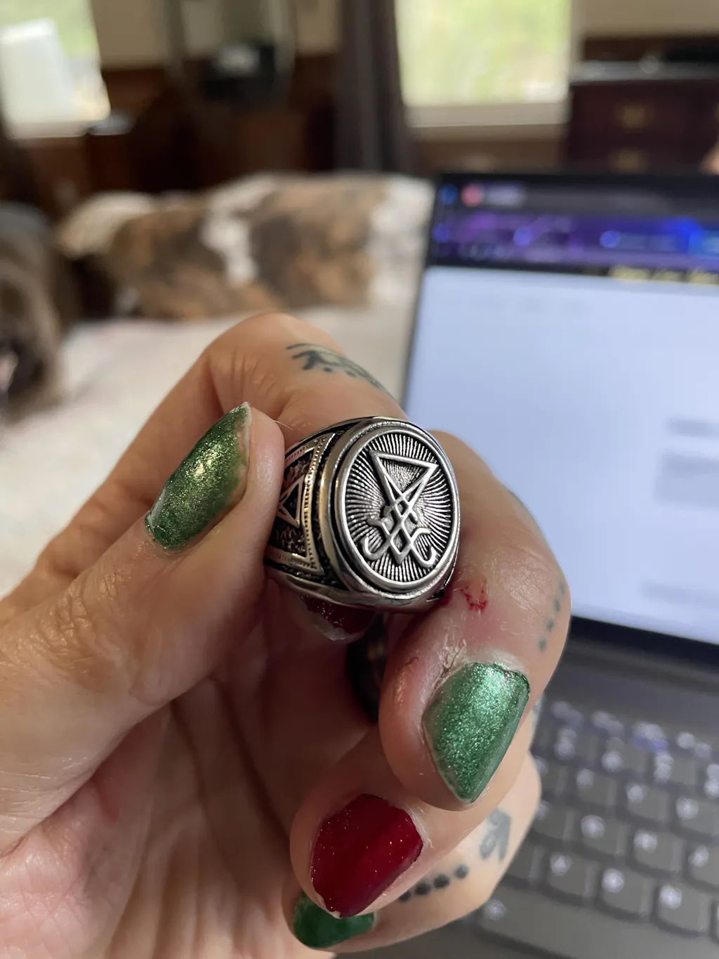 It was the exact size I needed it, the letter engravement is perfect on the inside & it looks amazing with other satanic ring i got from them.