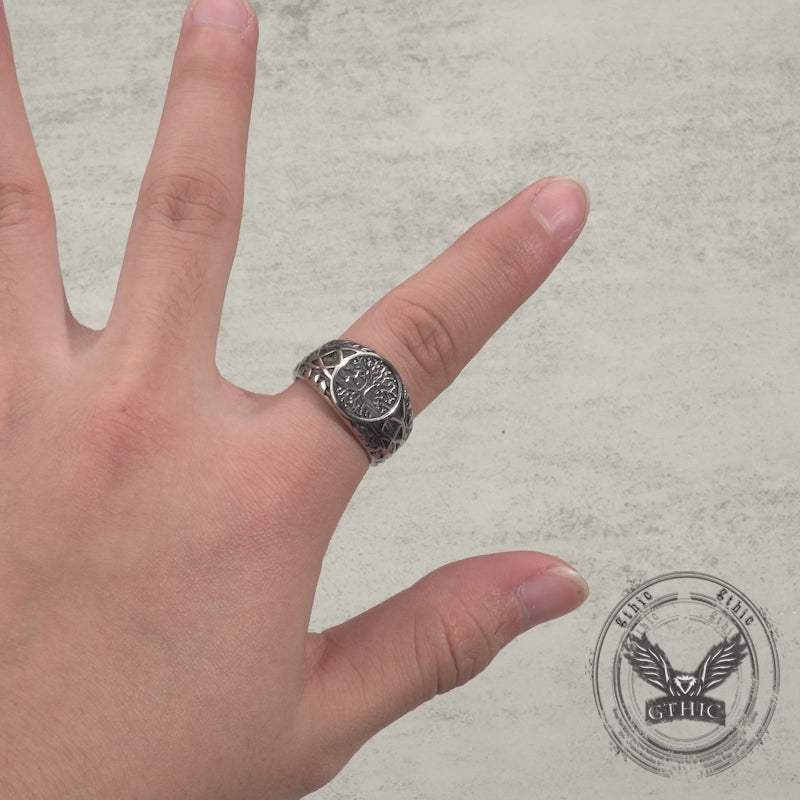 Fashion Gem Hollowed Tree Of Life Stainless Steel Viking Ring | Gthic.com