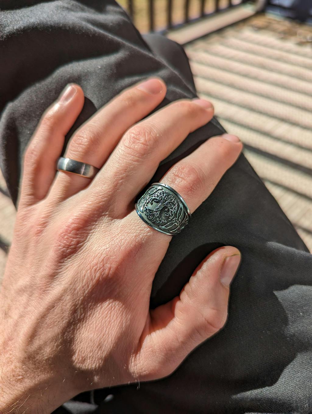 Baum des Lebens Rabe Edelstahl Wikinger Ring