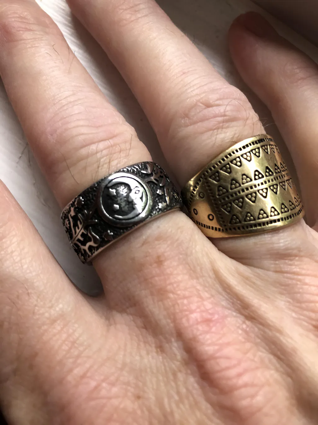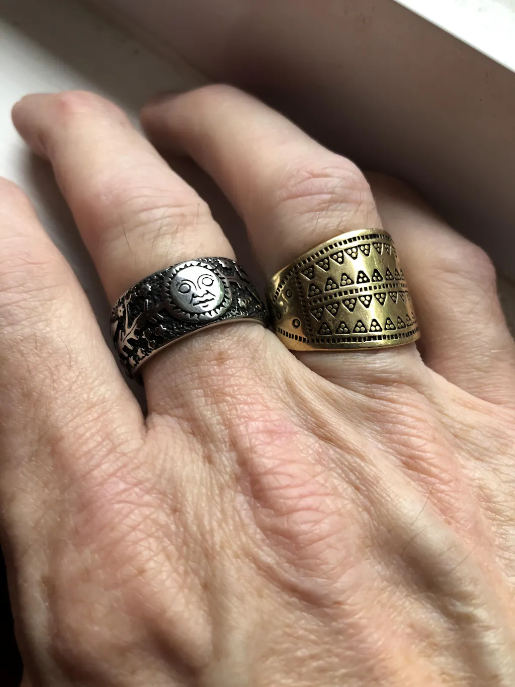 Really loving this ring! Good looking, excellent weight, fit is brilliant, love everything about it. I especially love the leaf and vine pattern between the Sun and Moon. A splendid piece.
