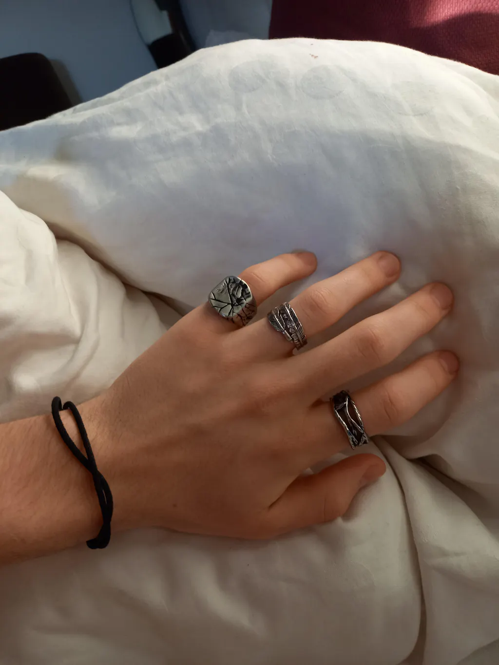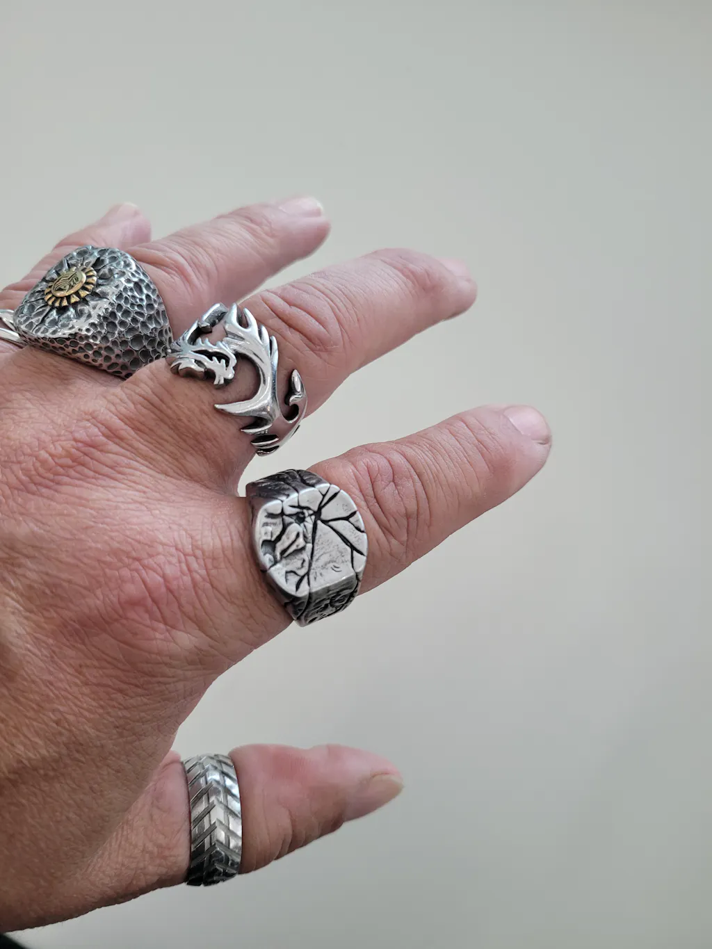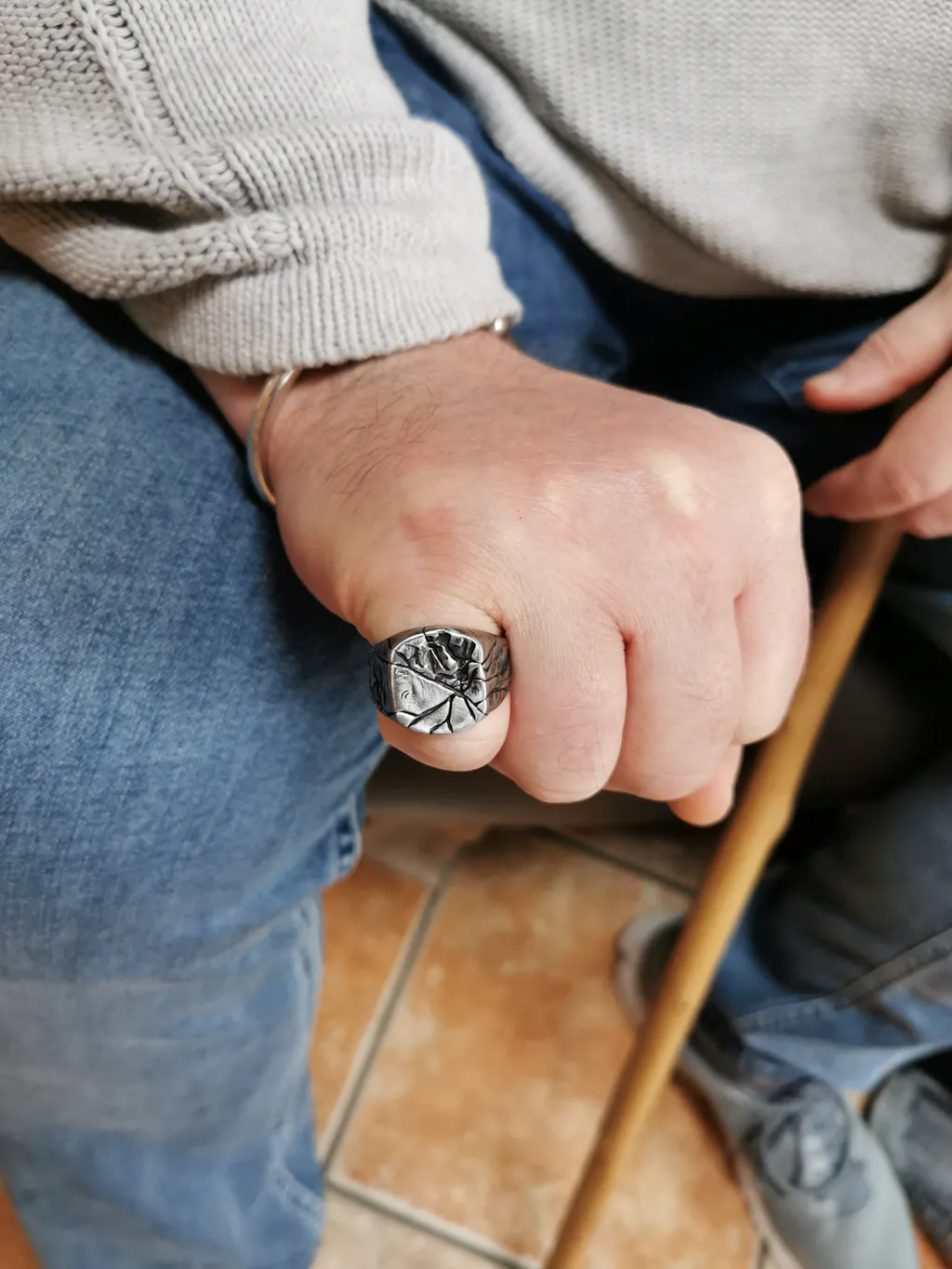 This ring has a unique shape. Our designer used a cracked stone prototype to design this ring. You have two materials to choose from. Our rings are handmade and exquisite and durable. The texture of the ring is prominent and the surface is uneven. The texture on the front extends to the side, which is very fashionable. It is a comfortable yet masculine ring, one that you will not be disappointed with. Get yours today!