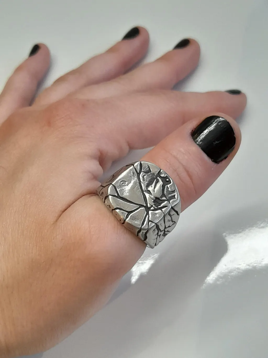 Cracked Stone Texture Stainless Steel Ring