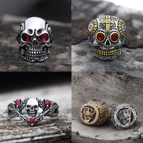 Der Aufstieg des Schädelrings lässt sich bis in die elisabethanische Ära in Europa zurückverfolgen. Das Tragen eines Totenkopfrings bedeutet, die Dunkelheit dieser Gesellschaft zu akzeptieren. Sie drücken durch den Schädel Respekt vor dem Leben und Mut angesichts der Gefahr aus. In dieser Zeit kann man gesellschaftliche Adlige und religiöse Gruppen sehen, die Totenkopfringe tragen. Diese Menschen repräsentieren die Fahne der Modetrends. Seitdem, mit der Entwicklung der Zeit, haben die Menschen immer mehr Ansichten über Schädel. Als Modeartikel sind Totenköpfe schon lange als Schmuckstück aktiv. Immer mehr Schädelformen wurden von Designern sorgfältig gestaltet und präsentieren schließlich verschiedene Schädelringe mit unterschiedlichen Bedeutungen und Stilen. Der gebräuchlichste Totenkopfring ist ein goldverkrusteter Totenkopfring mit einem kompletten Totenkopf und ordentlich angeordneten Zähnen. Es stehen Ihnen verschiedene Formen und Stile zur Auswahl.