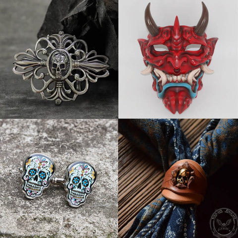 Totenköpfe sind weit verbreitet, neben Kleidung und Schmuck können Totenkopf-Designs auch in quadratischen Pfunden, Bartperlen, Manschetten, Masken, Krawattenklammern usw. verwendet werden. Wer Totenkopf-Elemente mag, dürfte mit diesen Totenkopf-Accessoires nicht fremd sein. Die weit verbreitete Verwendung des Totenkopf-Designs zeigt auch, dass die Menschen aufgeschlossener sind und ein vielfältigeres Verständnis von Totenköpfen haben. Die ihm gegebene Bedeutung hat sich von Flirt und Unterhaltung zum Nachdenken über Freiheit und den Wert des Lebens entwickelt, was auch beweist, dass das Schädeldesign ein sehr reichhaltiges Trendelement ist, und die Themenkampagne „Skull Month“ von Gthic zielt auch darauf ab, das Schädelelement zu kreieren mehr Designinspiration und beliebter Stil.