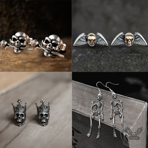 Von Prominenten bis zu Punk-Girls fehlen natürlich Totenkopf-Motive auf den Ohrringen. Dieses Mal brachte Gthic eine Vielzahl von Totenkopf-Ohrringen in verschiedenen Stilen auf den Markt. Abstrakte Totenköpfe mit zarten Rosen schwächen den Schrecken der Totenköpfe ab, fügen aber etwas Gothic-Mysterium und Romantik hinzu. Darüber hinaus gibt es auch bewegliche Halloween-Ohrringe mit tanzendem Totenkopf, verspielt und süß. Totenkopf-Ohrringe mit eingesetzten Flügeln, frei und uneingeschränkt. Vintage Kronen-Totenkopf-Ohrringe, geheimnisvolle Autorität usw. Diese Designs sind nicht nur trendig und modisch, sondern auch alle Arten von Ohrringen können unterschiedlichen Szenen gerecht werden.