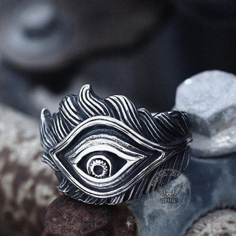 In addition to eagle feathers, another beautiful and auspicious feather is peacock feathers. In Greek mythology, the peacock is the divine bird of Hera, the queen of the gods, the wife of Zeus, and the patron saint of women, marriage and fertility. In Chinese mythology, beautiful colors and the "eyes" on the peacock's tail represent fame and good luck, as they enhance a person's protection and awareness. The design of this ring is inspired by peacock feathers. There is an eye in the middle of the fluffy down, which represents the unique beauty and pride of the peacock.