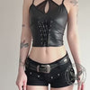 Punk Black Leather Lace Sexy Slim Halter Tank Top