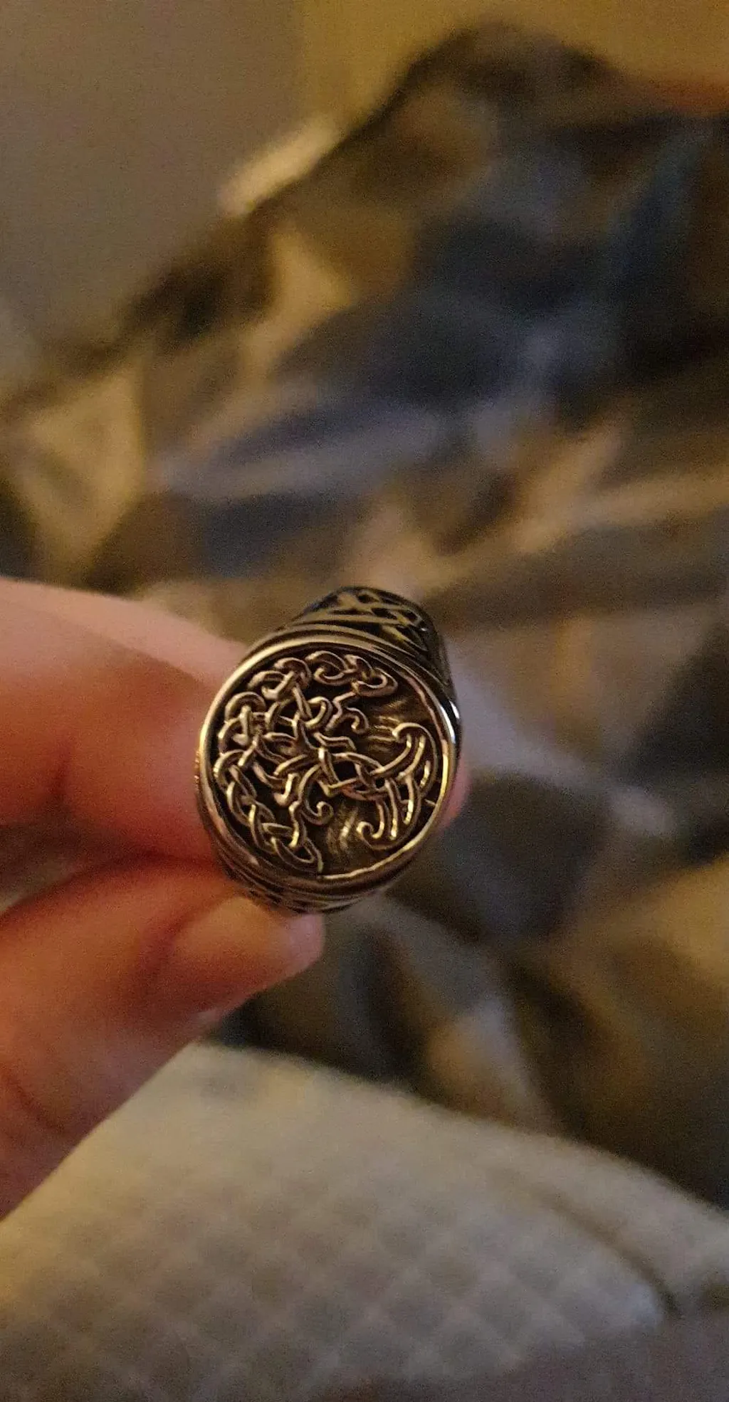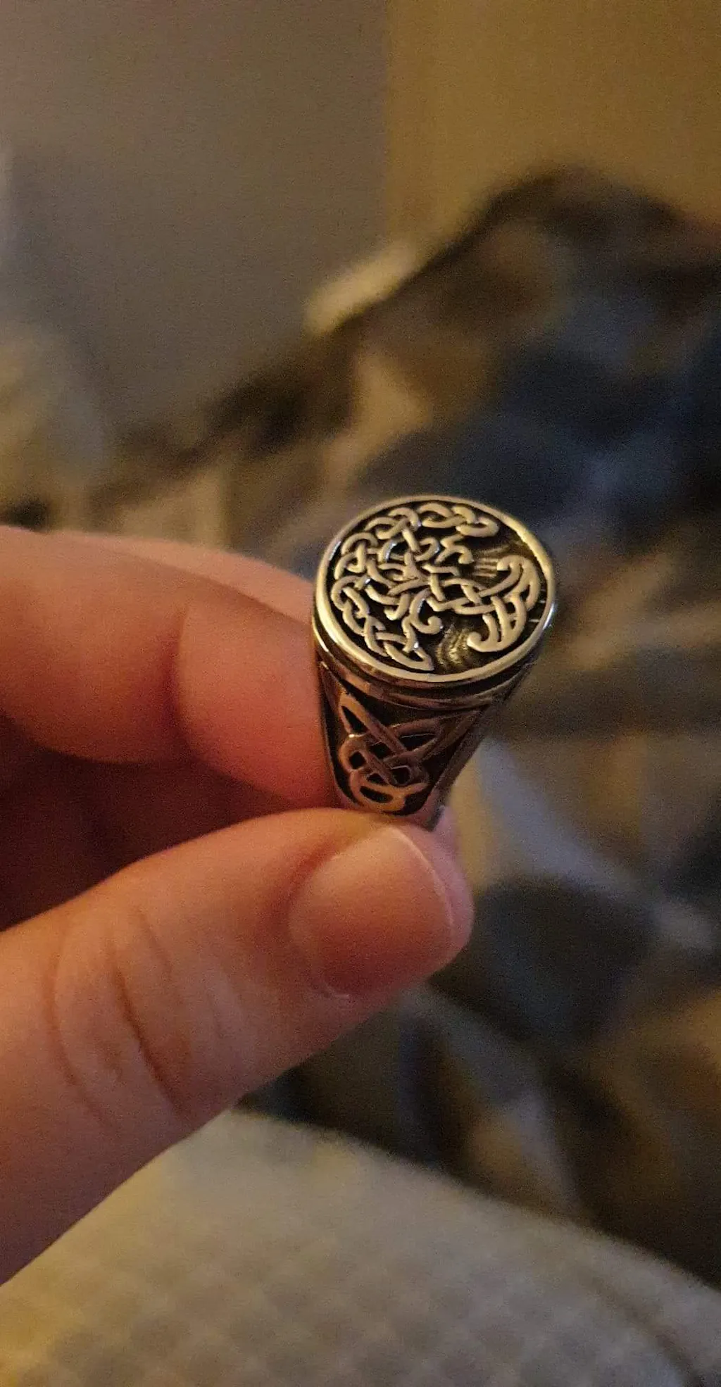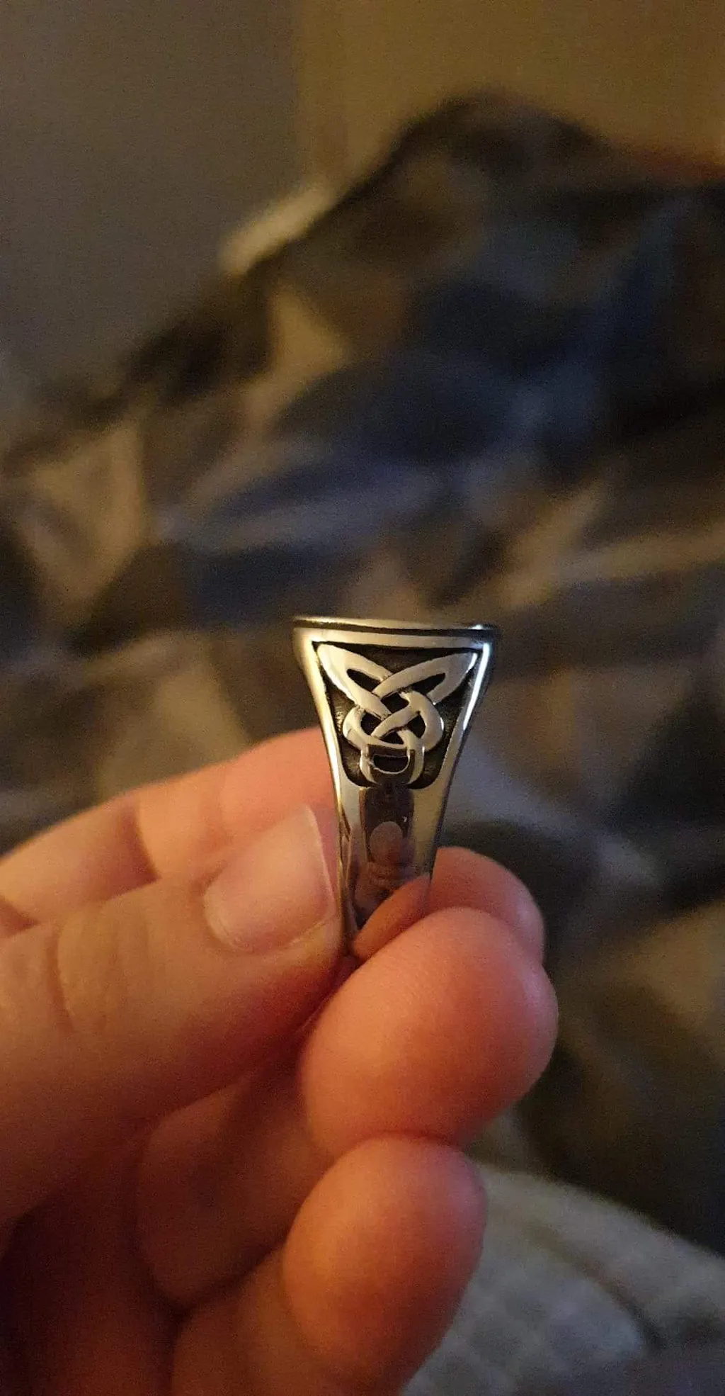 Great ring, shipped quickly, excellent craftsmanship. Unfortunately I measured my finger wrong and got it on size too big, no fault of theirs. Highly recommend using Gothic.My wife just ordered me a knot ring for my other finger to make me feel better about my mistake. Thanks Gothic!