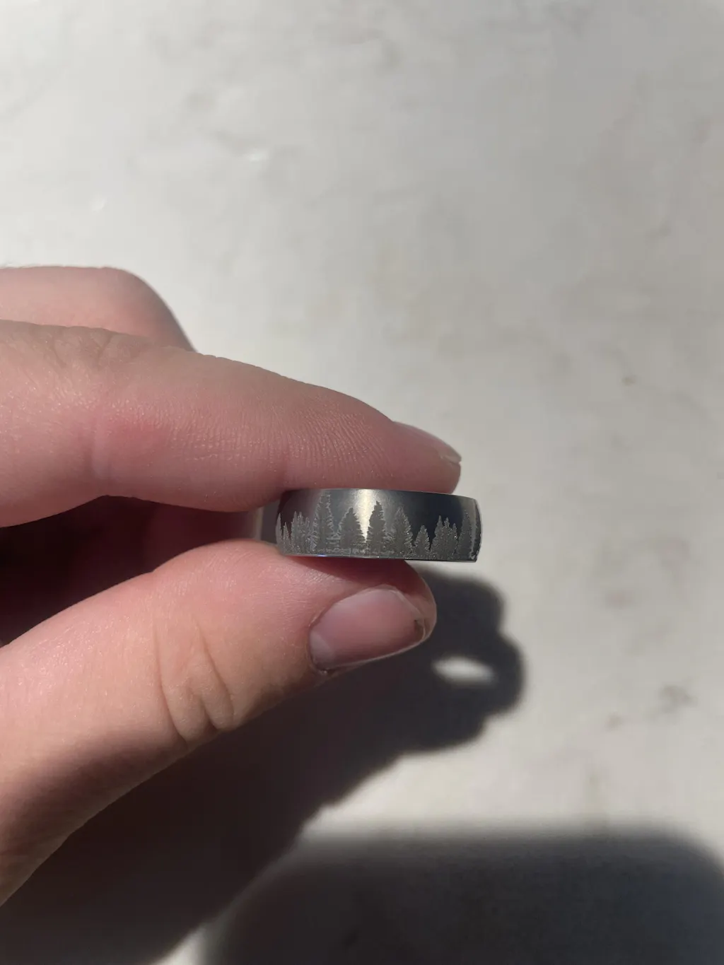 Titanium is the perfect jewelry material. Titanium itself is characterized by its high hardness, Lightweight, and Hypoallergenic properties, And will not rust even if you put it in seawater. For a very long time, pine trees have been considered to be symbols of longevity, wisdom, and virtue. Seeing them can also be a good sign because they symbolize good times and vacations. This ring is perfect for a wedding band, anniversary gift, promise ring, birthday, or gift to that special someone.