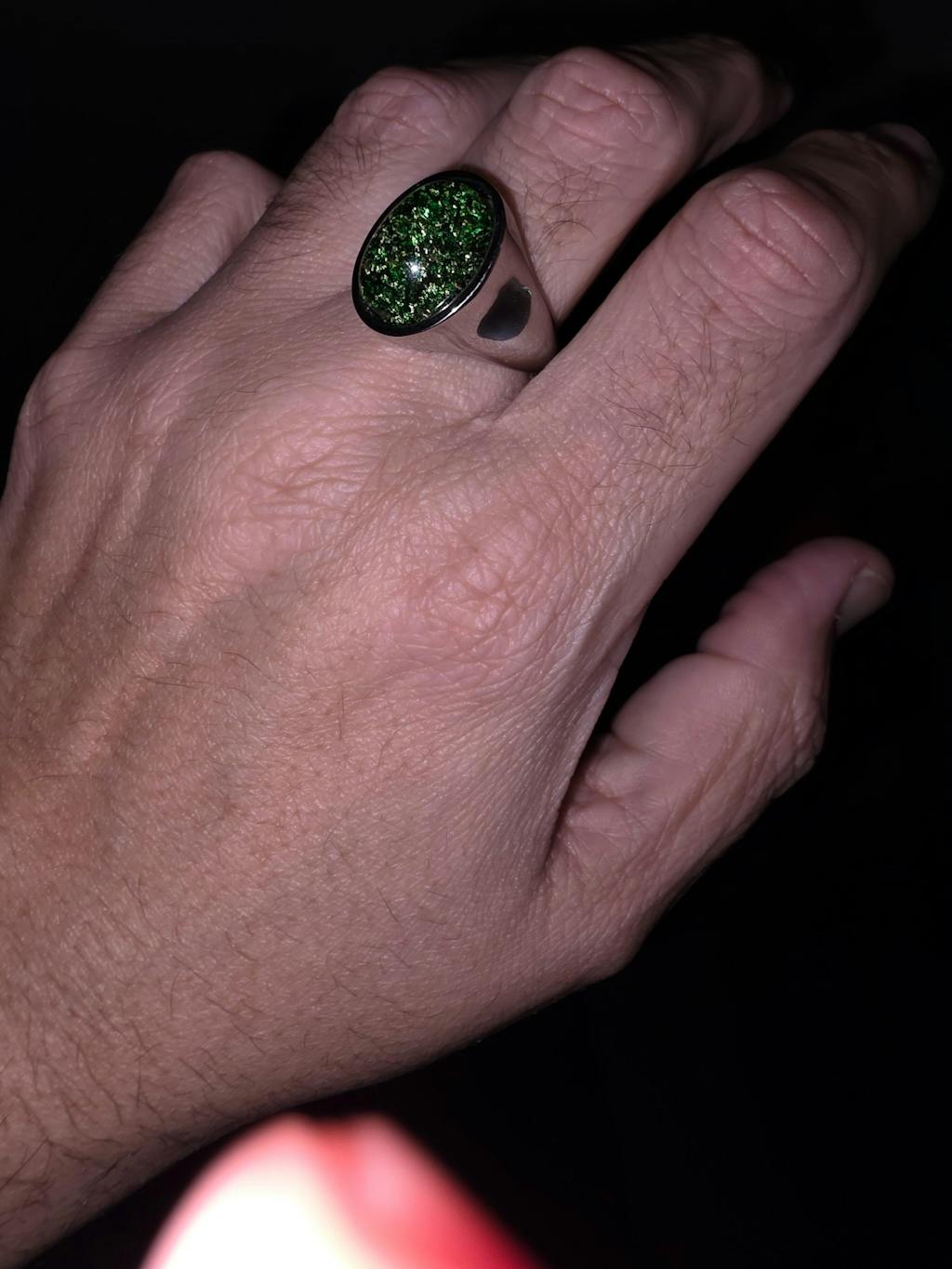 Simple Oval Green Gem Stainless Steel Ring