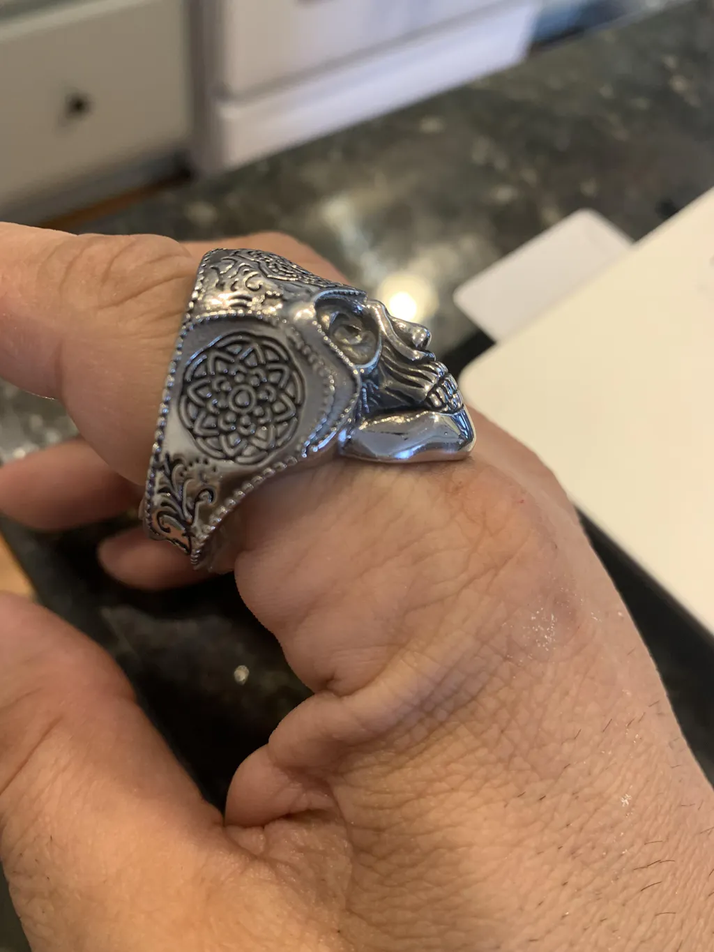 This is now the best ring I own, the hand made details are incredible from the face, the eyes, the teeth and even the band. The cupronickel just has a unique, light feel that outshines a stainless version. The fit is exactly what I specified. Couldn't be happier.