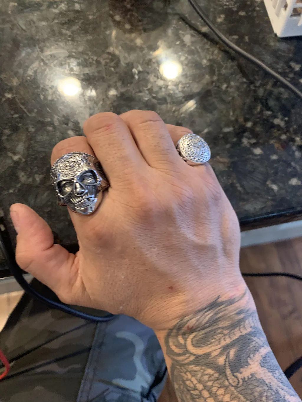 The other rings were awesome this one felt a little light and cheap with sharp parts inside of the hollow ring cool designs but bad quality. Suck but imma have to give a not so good review on this one the rest of the rings are fucking awesome. Keep up the good work and find out who dropped the ball in quality control and kick them in the nuts for me 🤘🏽