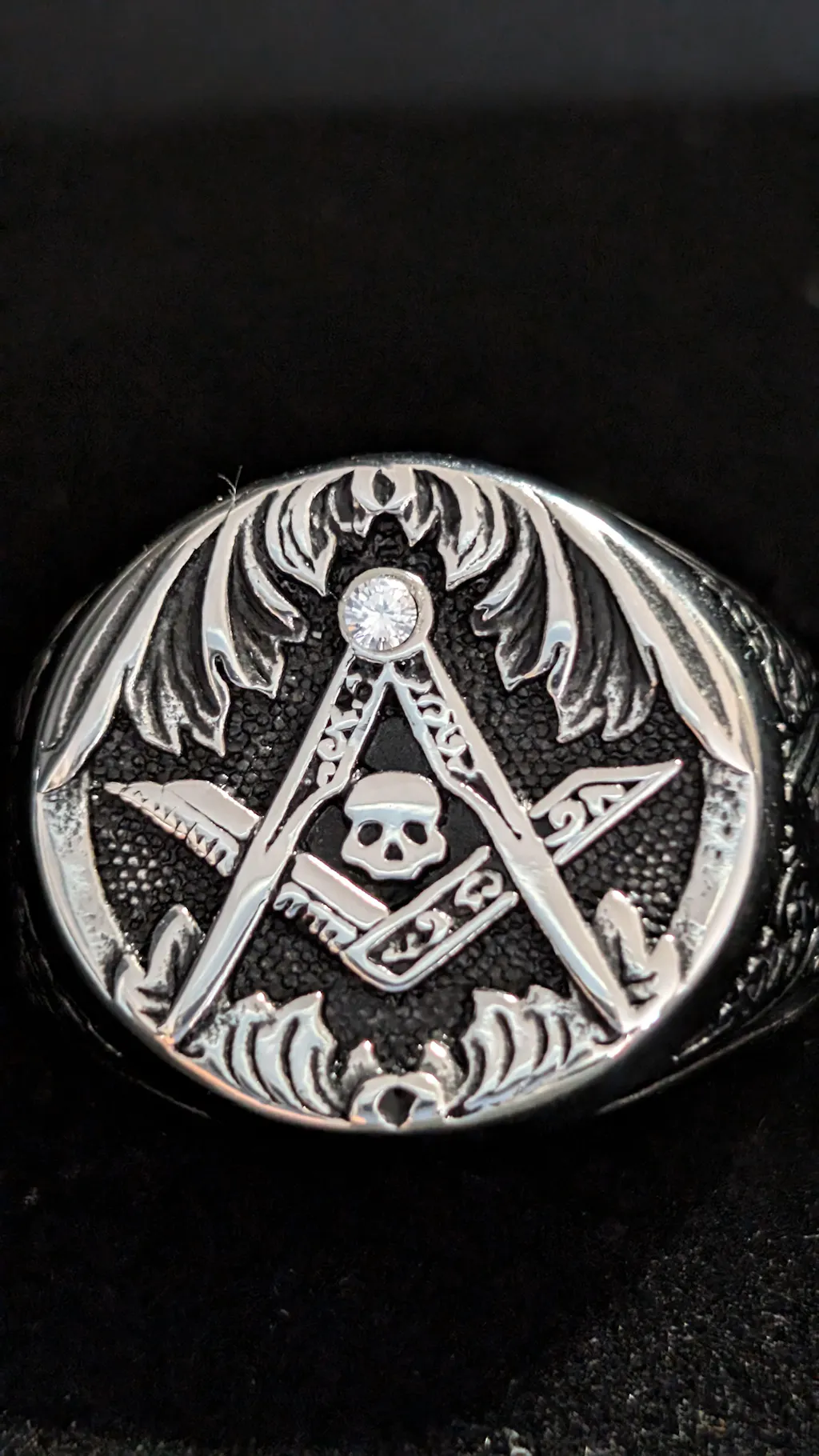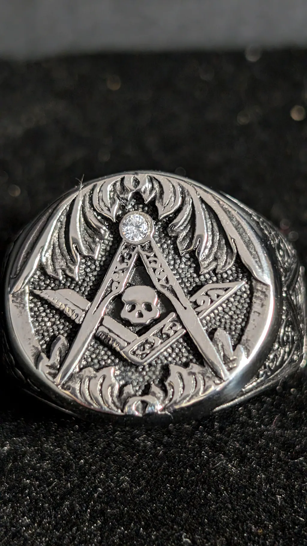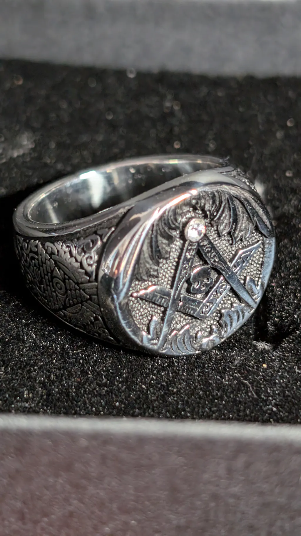 **This steel ring with Masonic symbolism is a fantastic piece of jewelry!** The intricate design and the weight of the ring make it a standout. While I was initially disappointed that the cubic zirconia fell out after only two days, it hasn't diminished my overall love for the ring. The steel itself is high quality and the symbolism is deeply meaningful to me. It's a comfortable fit and I've received numerous compliments on it. Despite the minor setback, I'm incredibly happy with my purchase.