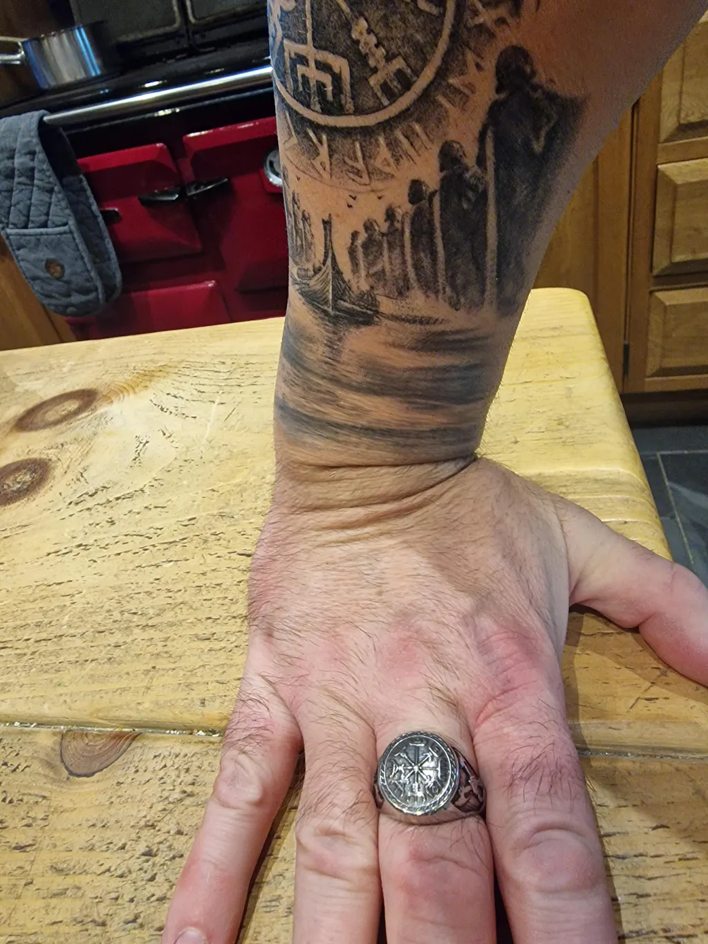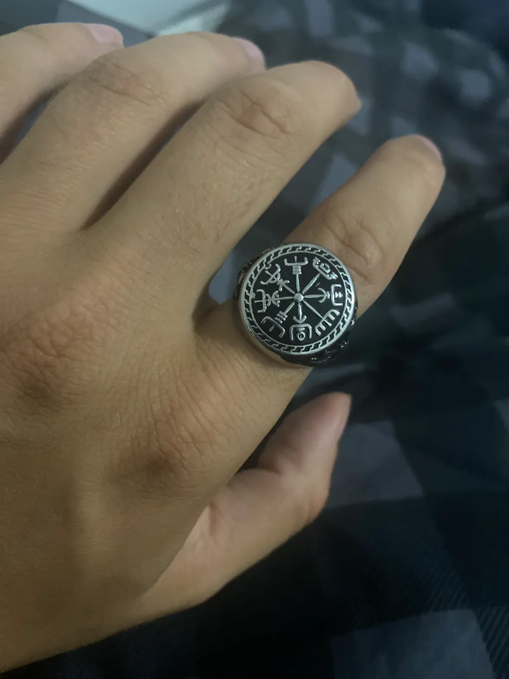 Our Viking ring combines a variety of Viking elements, like Viking Compass, Viking Axe, Valknut. The front of the ring is Viking Compass which represents staying on course in our spiritual voyage, and in finding our way through all the ups, downs, twists, and turns our lives can take. The side of the ring is Viking Axe which conveys the heart or mind's ability to cut through that which holds one back and to forge boldly ahead. The whole ring is old-fashioned, making it look periodical. You've found what you're looking for. Get yours today!