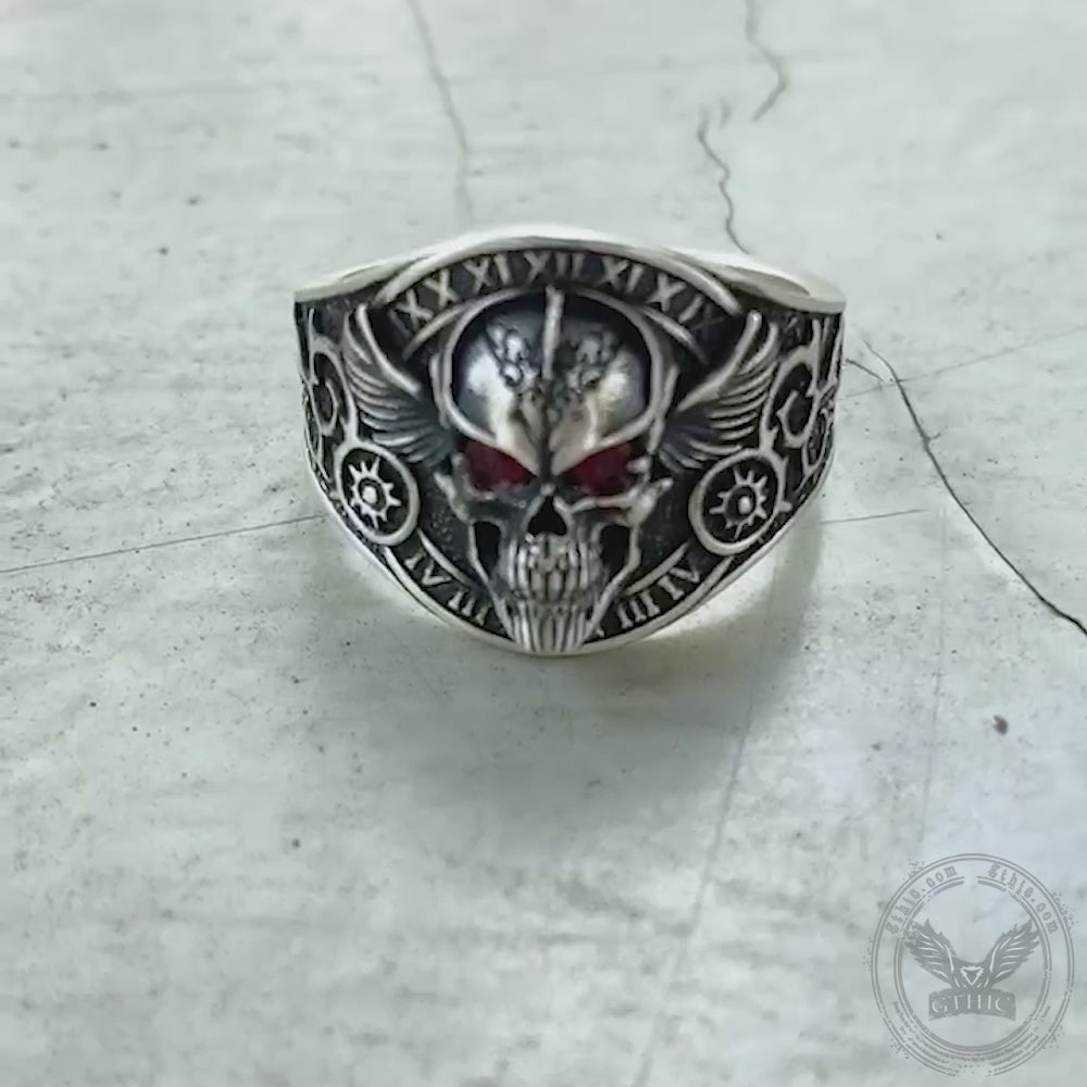 Winged Skull Stainless Steel Biker Ring | Gthic.com