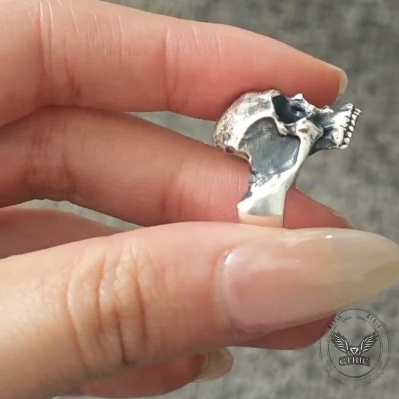 Gothic Half Skull Face Sterling Silver Ring