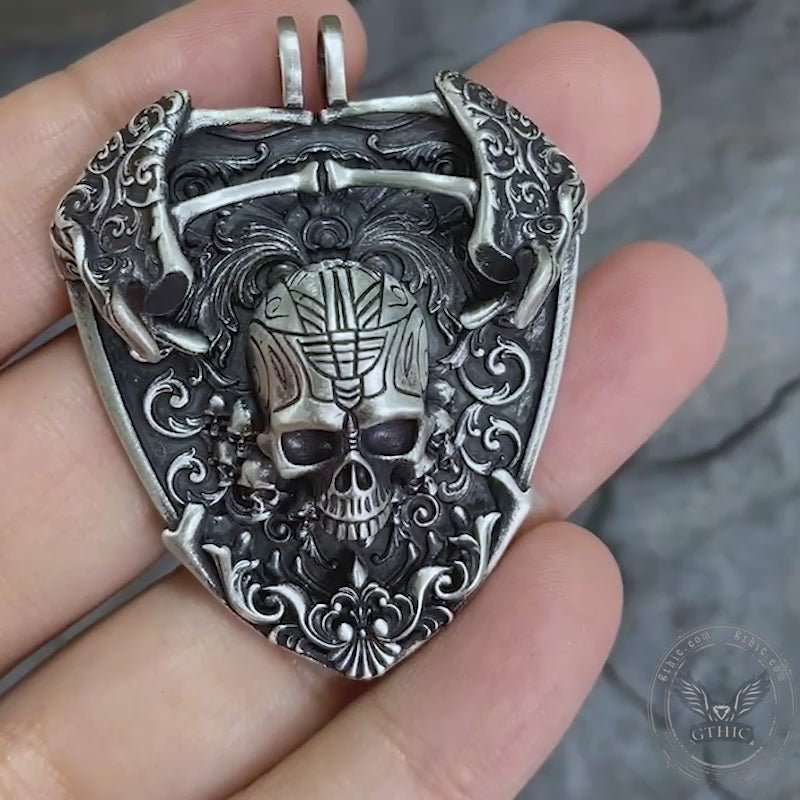 Sword and Shield Sterling Silver Skull Pendant | Gthic.com