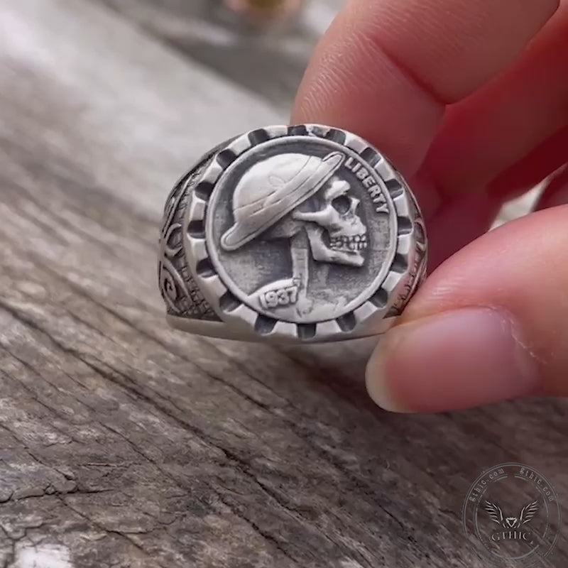 Vintage Vine Sterling Silver Skull Masonic Ring 02 | Gthic.com
