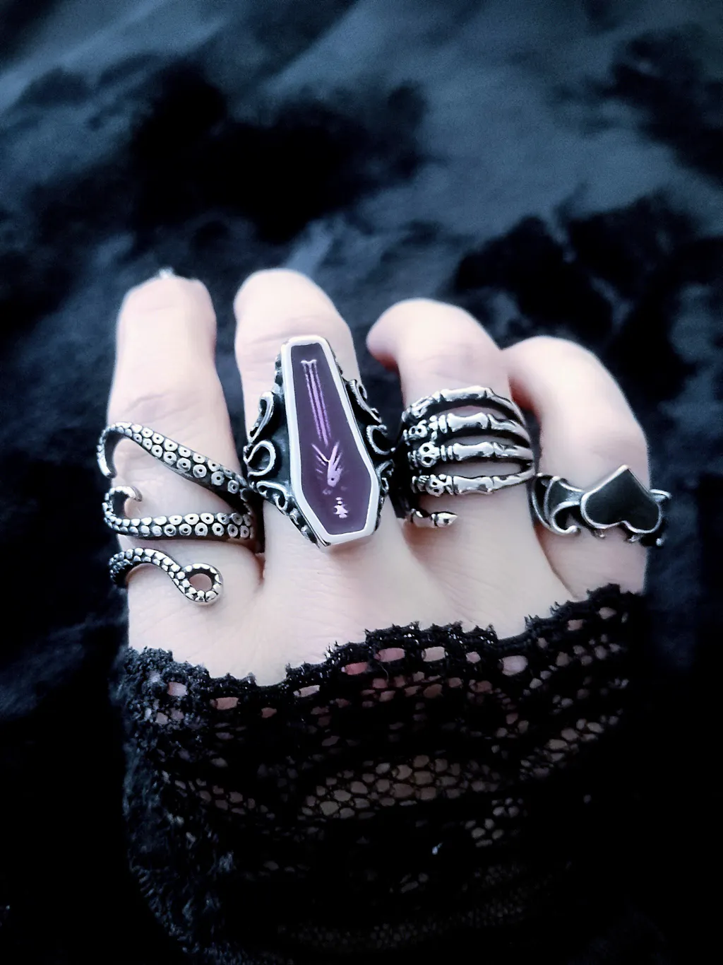 This Gothic bat ring is the perfect complement to your goth outfit. Replacing the bat's face with a black heart adds a touch of magic. It is believed that vampire bats can communicate with dead ghosts. With the theme of a vampire bat, this ring will make your look stand out with your Halloween outfit.