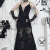 Sexy V-Neck Plant Print Lace See-Through Sling Dress 01 | Gthic.com