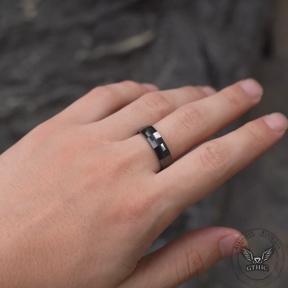 Black Rectangular Faceted Ceramic Ring | Gthic.com