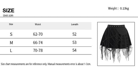Minifalda con flecos de encaje irregular de telaraña negra