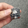 Rose Vine Pattern Skull Sterling Silver Ring | Gthic.com