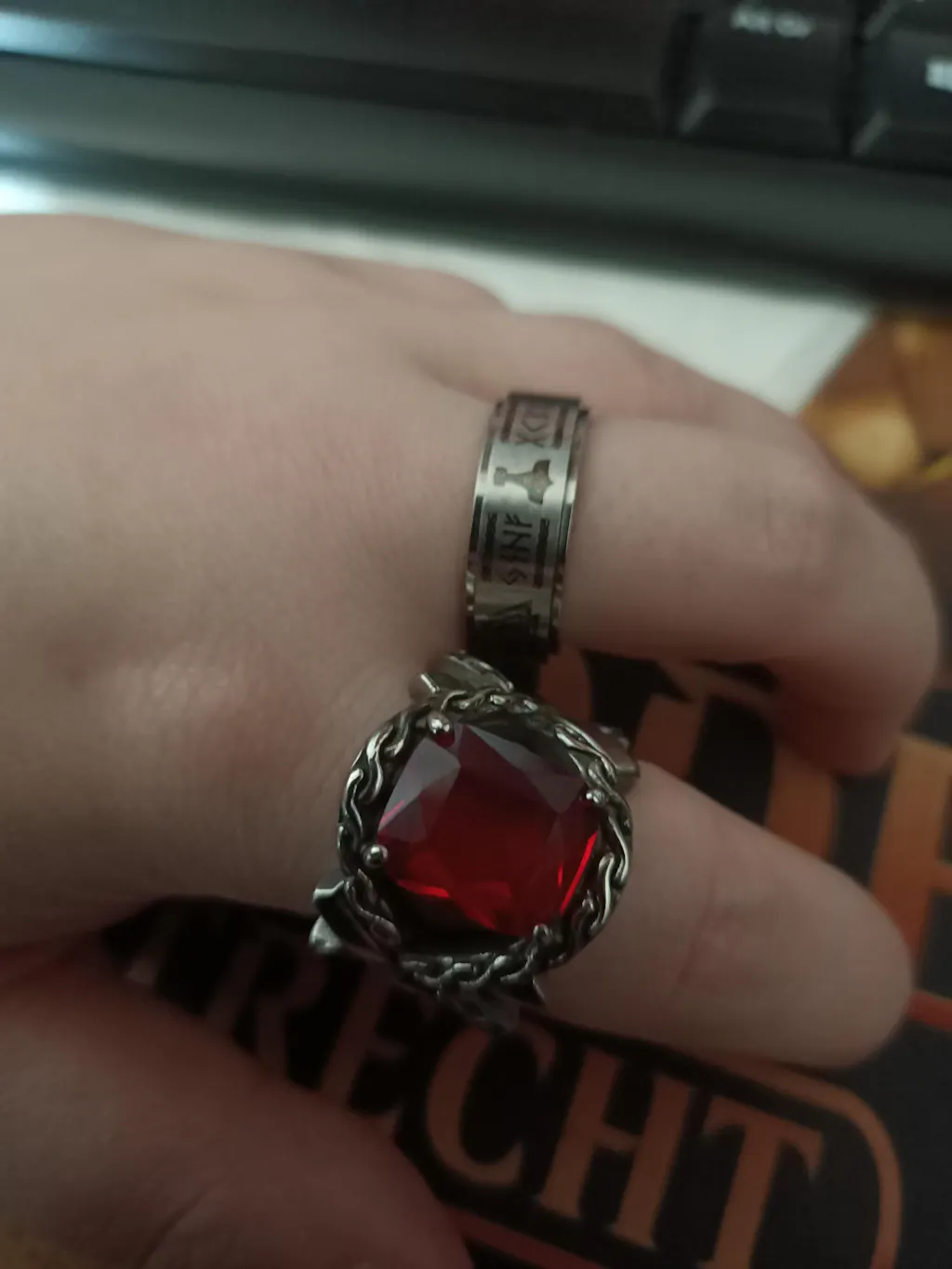 la bague est vraiment sympa. détails très jolies mais une petite erreur d'un symbole à l'envers.