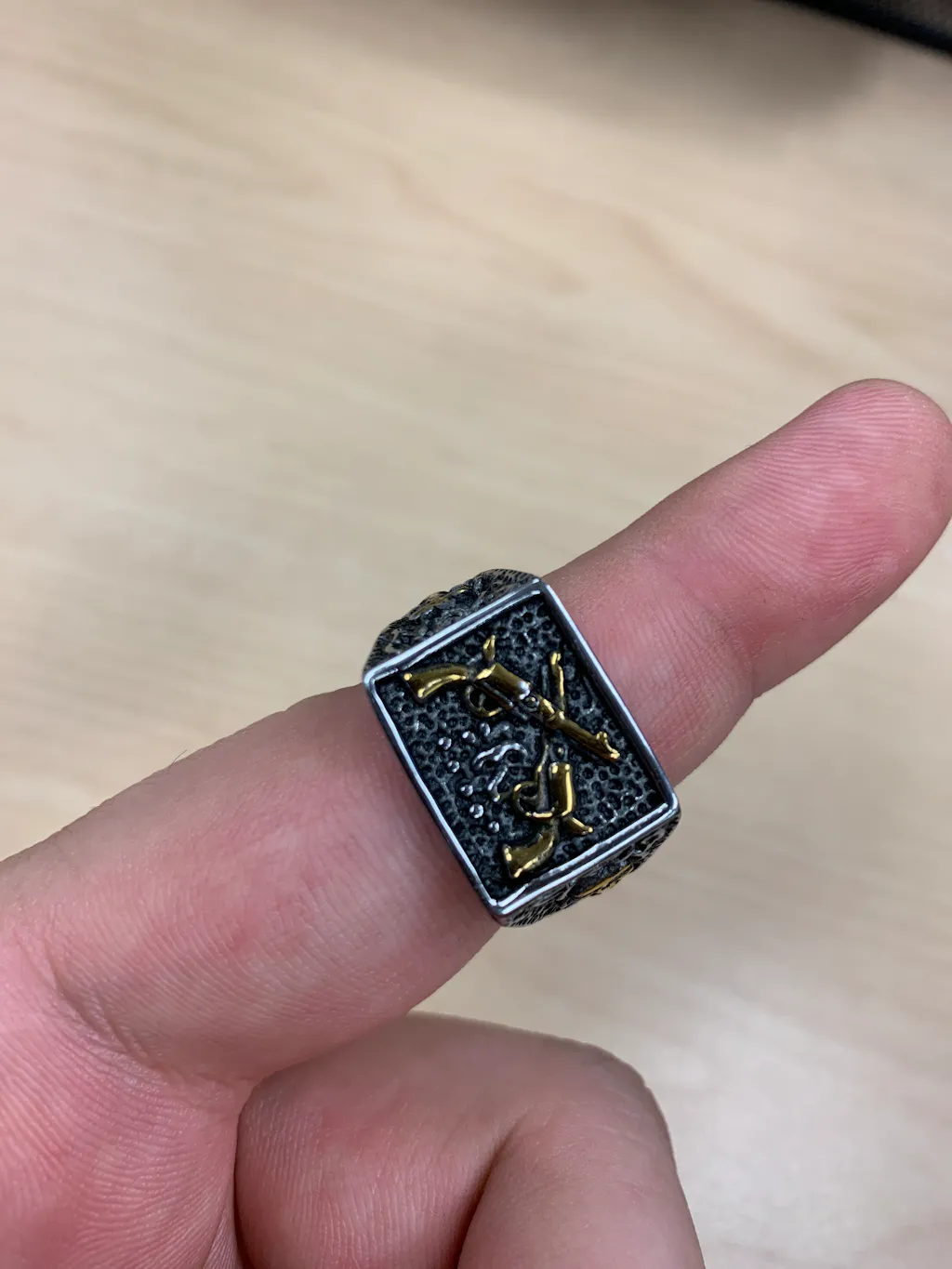 If realism is where your hearts at, our Double Guns Ring will take you straight back to those dusty streets. As if miniaturized from a real-life dual, this exquisite ring draws inspiration from a classic handgun. Ideal for the rocker or biker still throwing it back to those Wild Wild West films. Truly men's stainless steel rings.