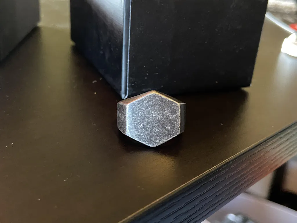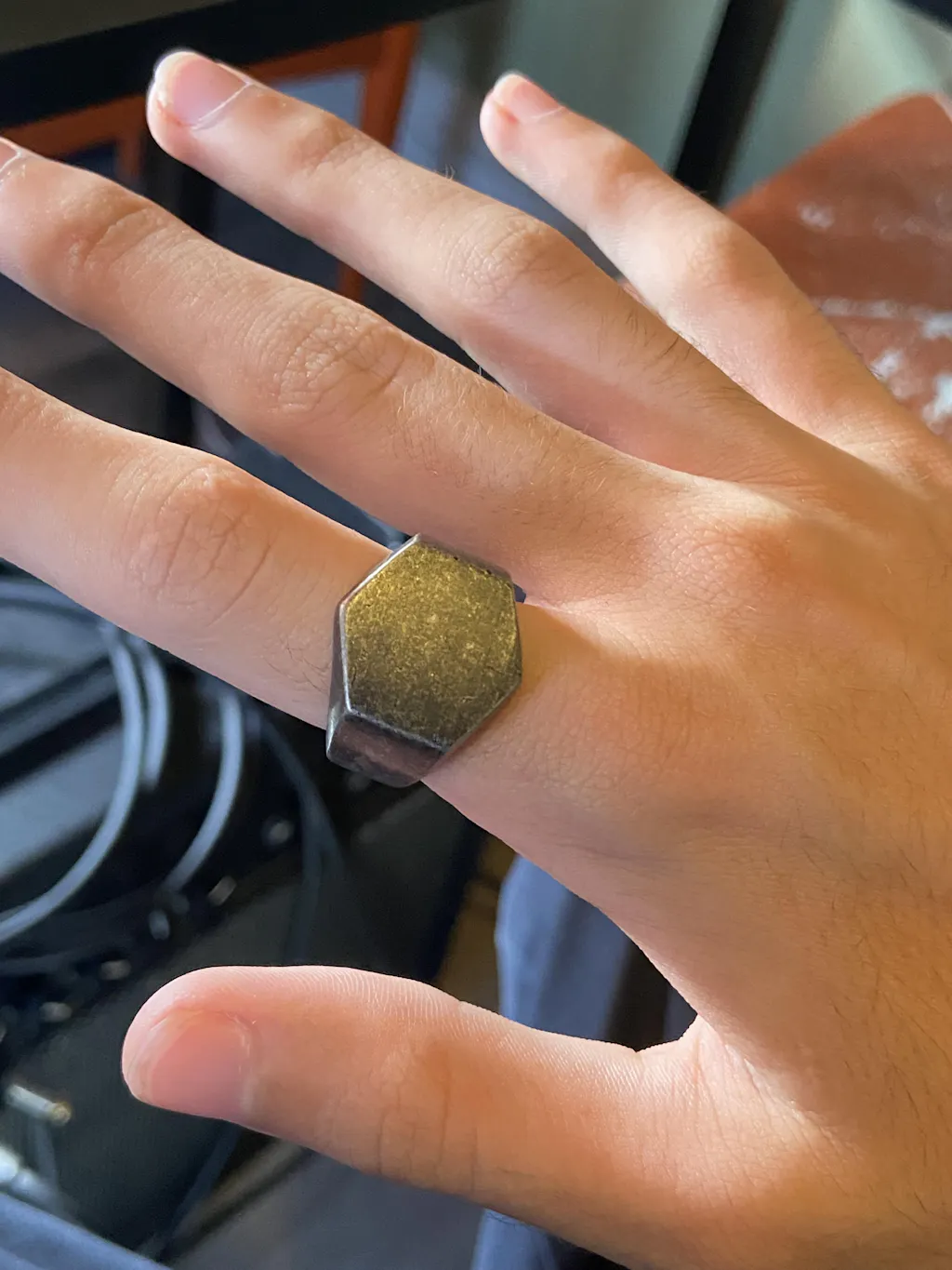 The shape of the ring surface is a hexagon. The ring surface is smooth and without any pattern, which creates a look that is simple, generous and easy matching. It may become your most frequently used item with its classic design and comfortable wearing experience. Get yours today! It will look good on anyone's fingers!