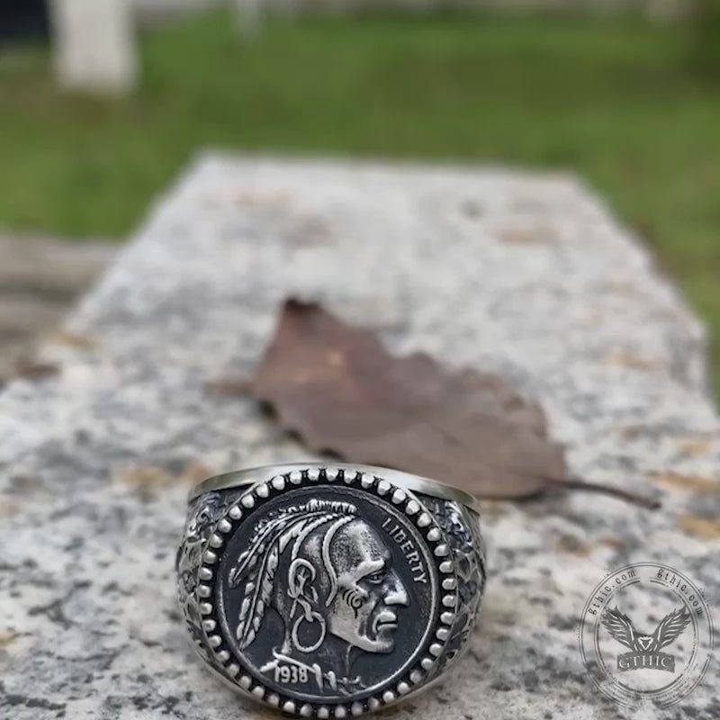 1936 Hobo Nickel Coin Bague tête de mort en argent sterling
