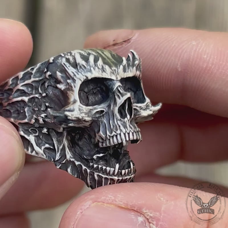 Skulls Surrounded Sterling Silver Ring | Gthic.com
