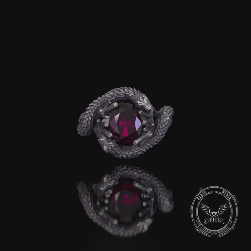 Vintage Two Dragons Playing With Gem Sterling Silver Ring | Gthic.com