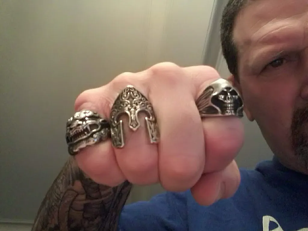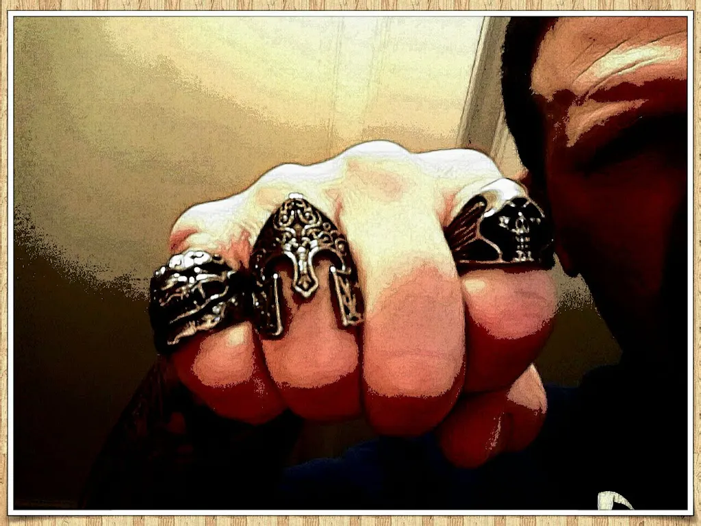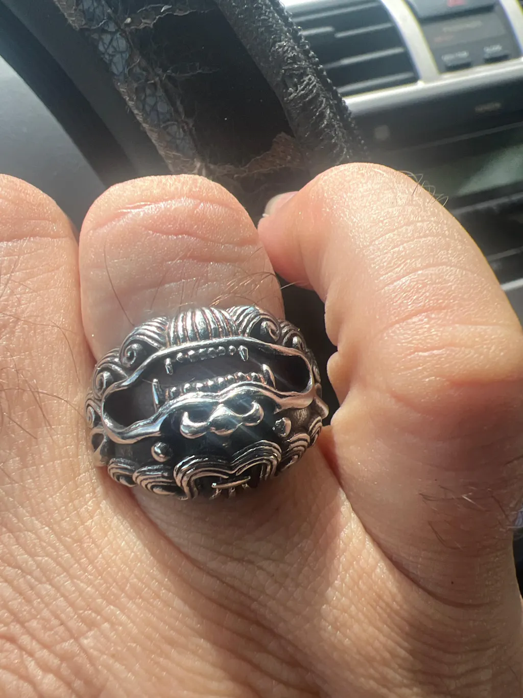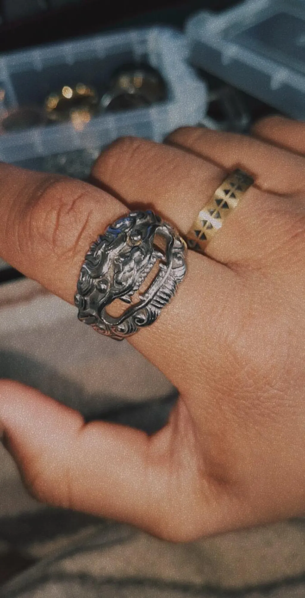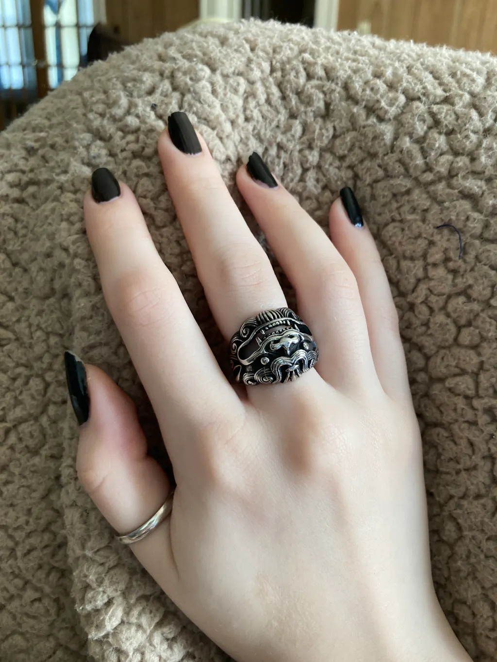 Taking a piece of Oriental culture into your collection, our Japanese Demon Mask ring makes a statement. Large and heavy, it sits proudly around the finger, demanding the attention of all. Our master has worked tirelessly to carve out the snarling face of a Japanese demon into this piece. His glare sinks deep into your soul long before you've had time to appreciate the incredible detail. Men's stainless steel ring, demon skull ring.