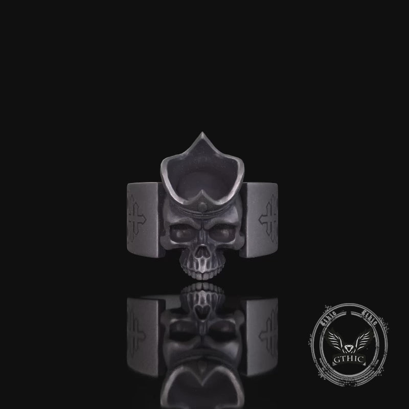 Gothic Crown Skull Leviathan Cross Sterling Silver Ring