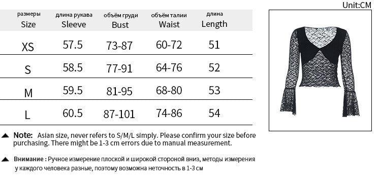 Sexy Black See-Through Lace Bell-Sleeved Top