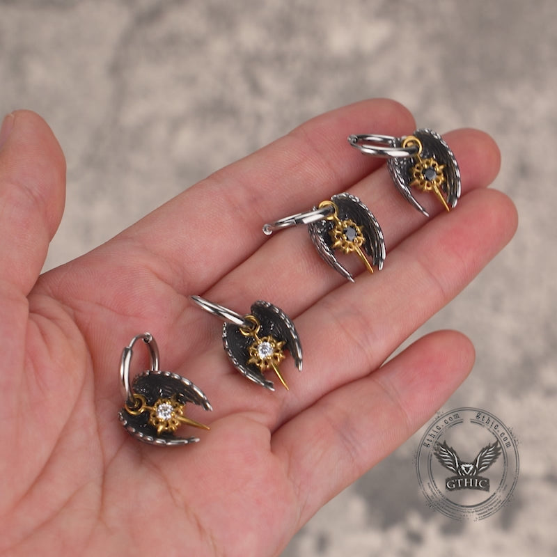 Vintage Angel Wing Cross Star Stainless Steel Earrings 02 | Gthic.com