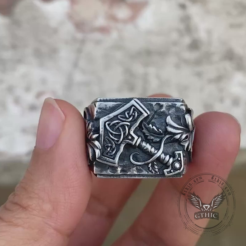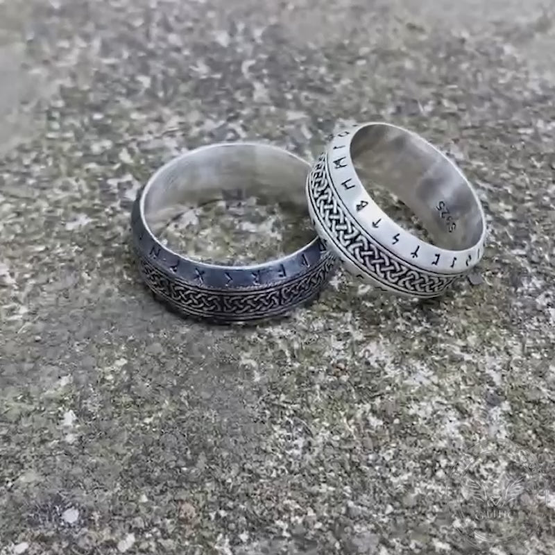 Norse Runes Celtic Knot Sterling Silver Viking Ring | Gthic.com