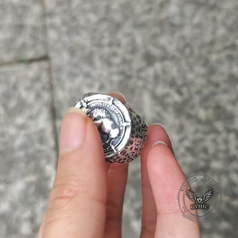 Aztec Jaguar Warrior Stainless Steel Skull Ring - GTHIC