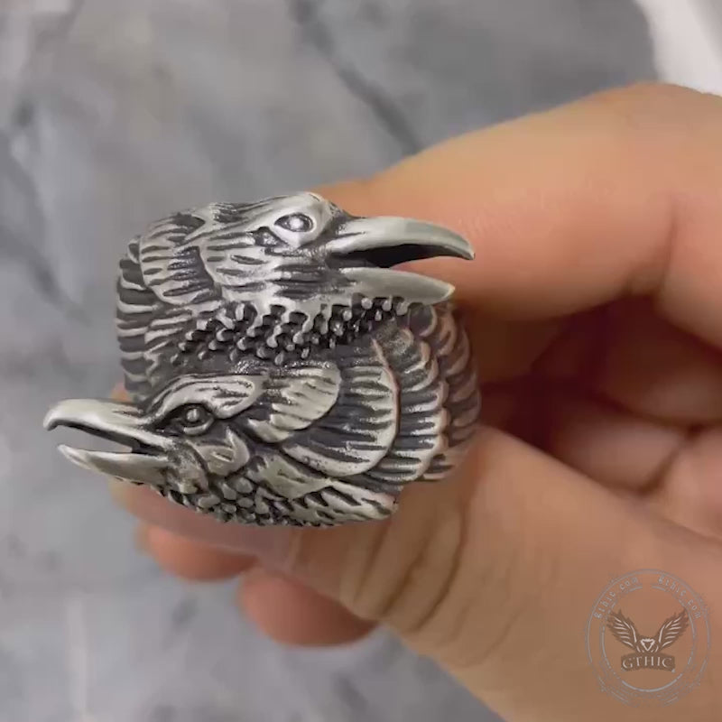 Odin Ravens Huginn and Munin Sterling Silver Viking Ring | Gthic.com
