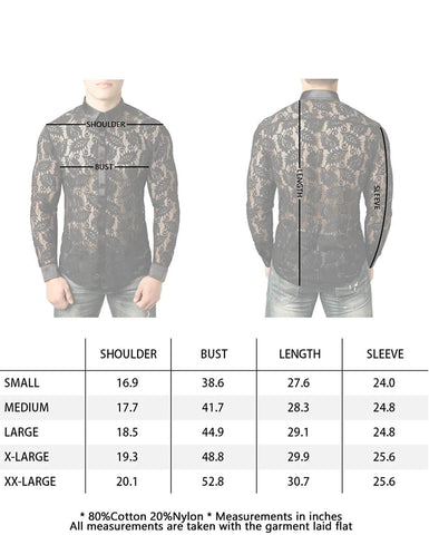 Embrace your inner fashionista and make a bold statement with our mid-century sheer floral lace men's shirt. It can not only be worn alone, but also as an inner layer. Its unique blend of vintage and modern elements will catch the eye and leave a lasting impression. Upgrade your style today and add a touch of romance and elegance to your wardrobe.
