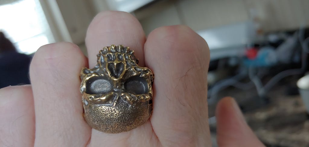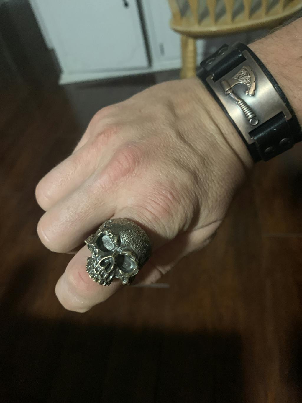 Bestiale e nefasto, questo anello in argento sterling con teschio di pioniere oscuro aggiunge un tocco malvagio. Caratterizzato da un grande e furioso teschio di uomo vampiro, l'anello è ampiamente dettagliato e realizzato con cura utilizzando argento sterling massiccio di altissima qualità (mai placcato!) Con il suo aspetto minaccioso, questo anello funziona particolarmente bene con abiti rocker e abbigliamento da motociclista.
