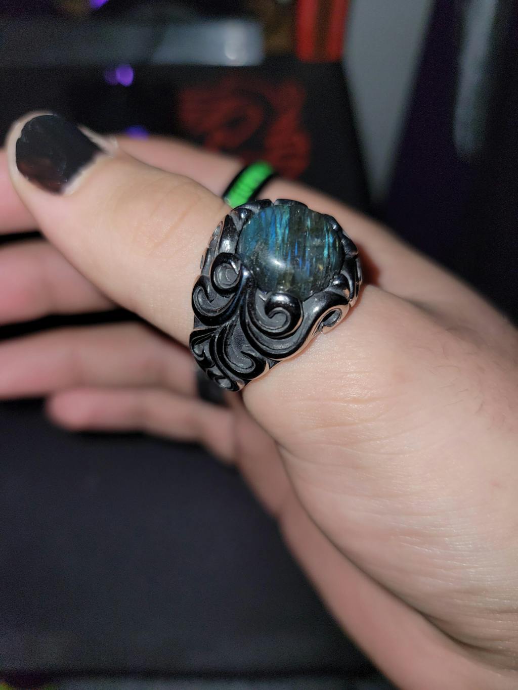 The mysterious and quiet moonstone ring with Gothic style pattern gives an invisible attraction that makes people can't take their eyes off it. In New Age beliefs, the moonstone symbolizes femininity, intuition, new beginnings, and inner wisdom. It is associated with wisdom and fertility. Get yours now!
