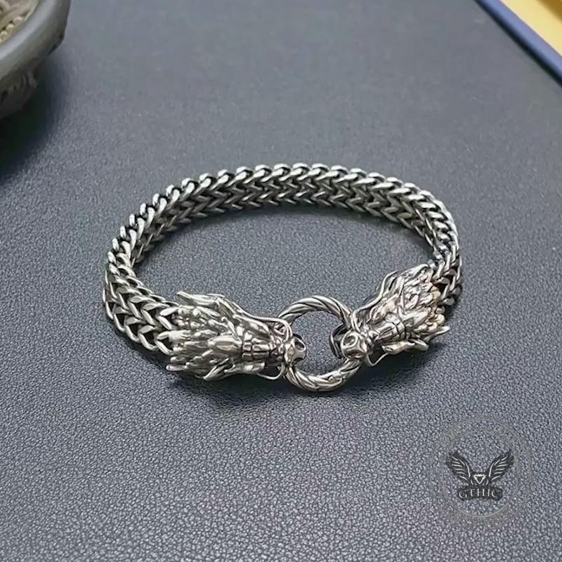 Punk Double Dragon Head Stainless Steel Animal Bracelet