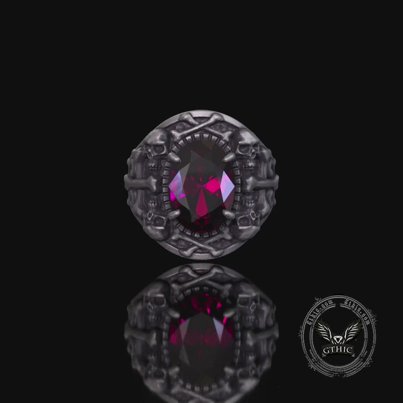 Gothic Skull Crossbones Sterling Silver Gem Ring | Gthic.com