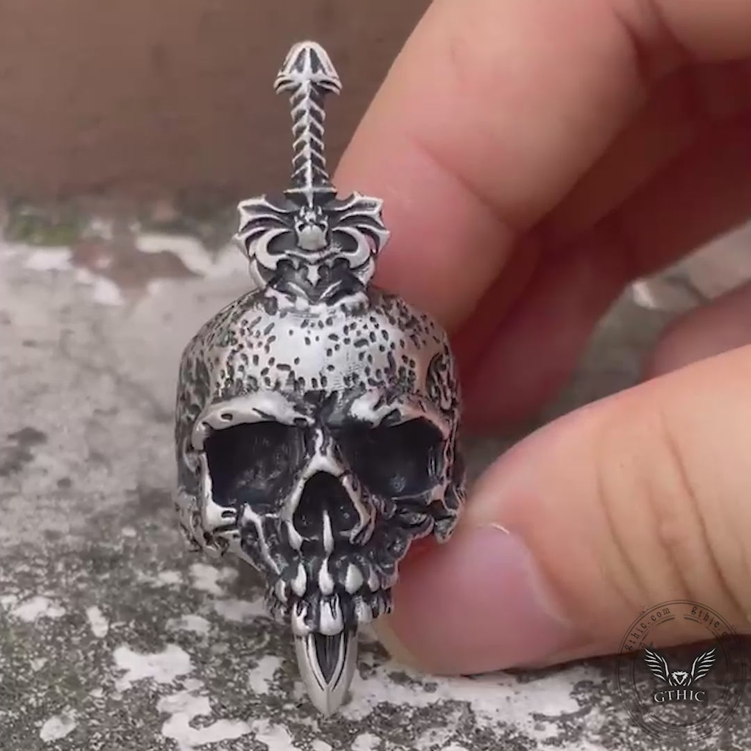 Sword Piercing Skull Sterling Silver Ring | Gthic.com